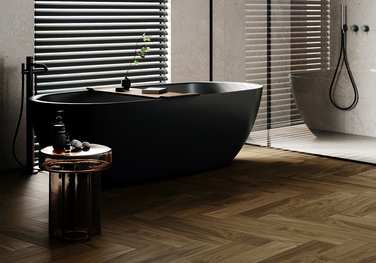 Это напольное покрытие из натурального дерева на каменной основе, которое можно уложить в любой комнате. И даже в ванной! Кварцпаркет укладывают без порогов на большой площади (до 144 м2), чтобы наслаждаться теплом прикосновений и рисунком из прожилок живого дерева.