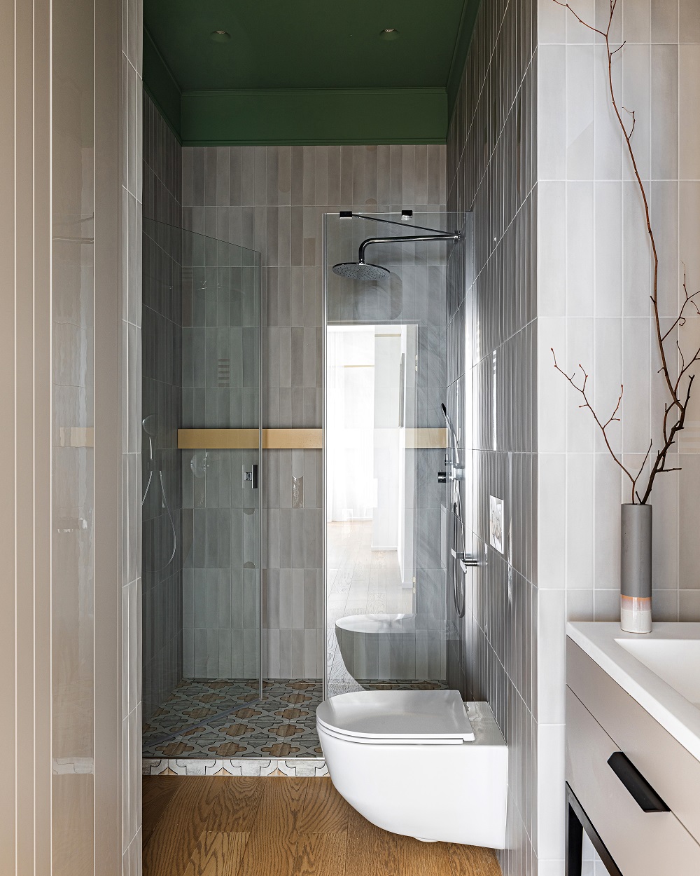 Передо дизайнером Анной Исуповой встала задача найти компромисс между архитектурой современного ЖК, ритмами большого города и привычкой заказчиков жить за городом неспешной и размеренной жизнью, их любовью к малой родине. Поэтому основа проекта стала лаконичной и современной подстать локации и видам из окон. И в эту канву умело вплели историю о любви к природе, традициям, искусству, семейные ценности и рассказы о путешествиях.
